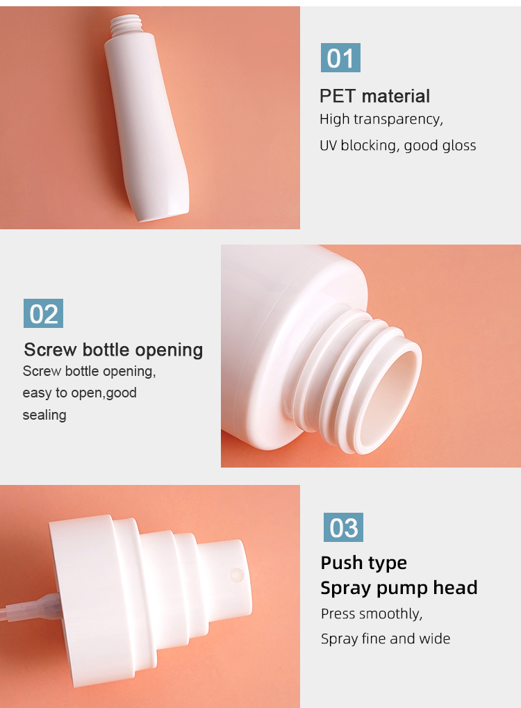 Wholesale Premium 30ML 60ML 80ML 100ML 120ML Matte Custom Color Cosmetic White Fine Mist Spray Bottle For Cosmetics Price:¥USD0.4 Place of origin:GUANGZHOU